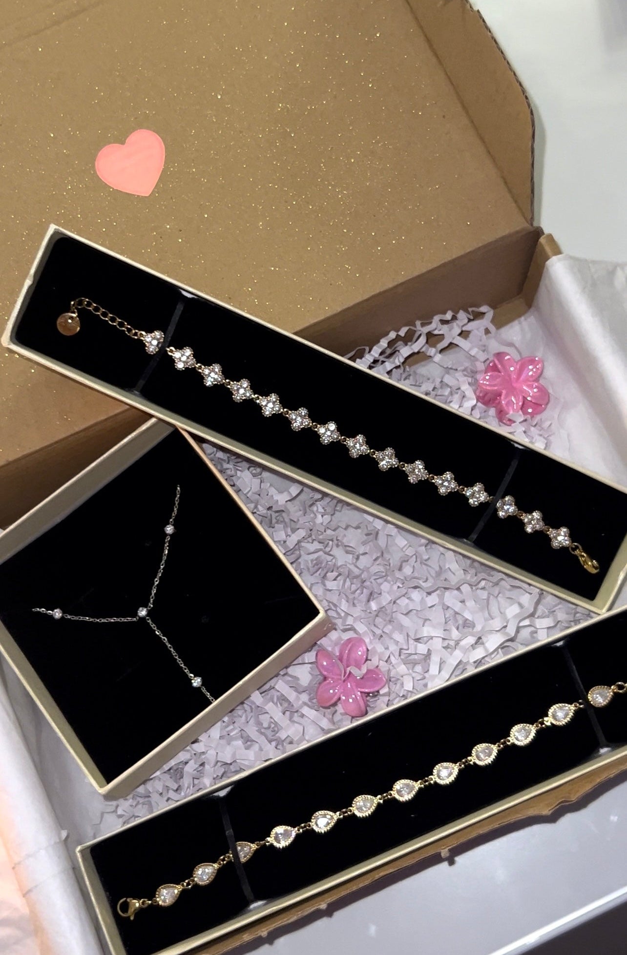 Un trio harmonieux, alliant éclat, délicatesse et féminité, pour sublimer chaque geste avec élégance.